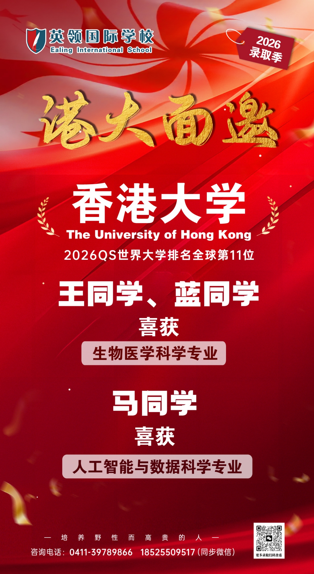 祝贺英领学子一举斩获三封香港大学面试邀请!